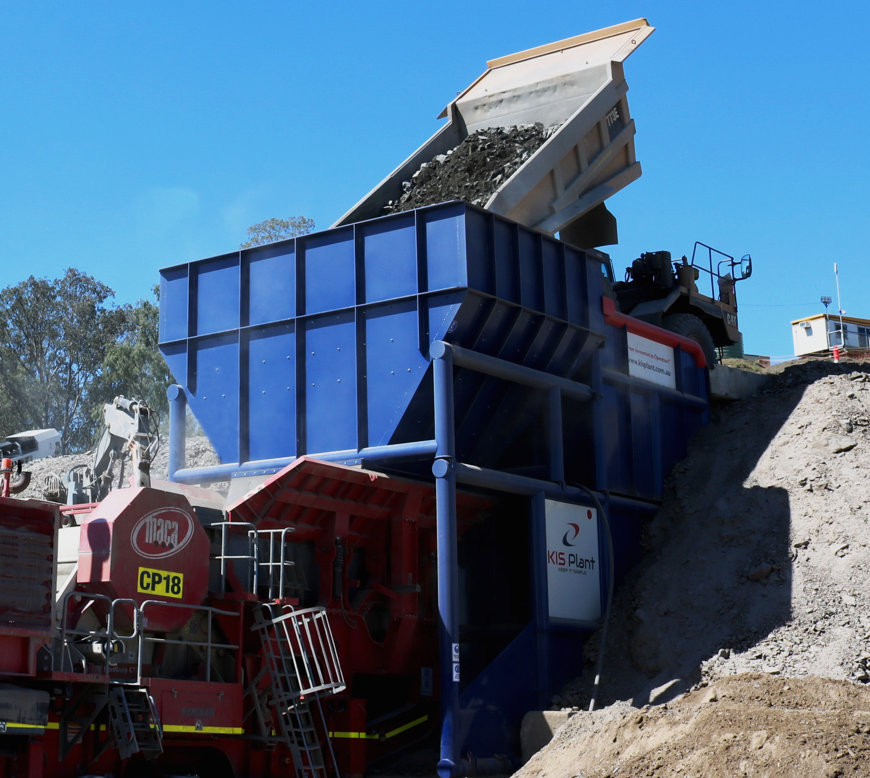 - 40-90 tonne dump trucks tip directly into the bin